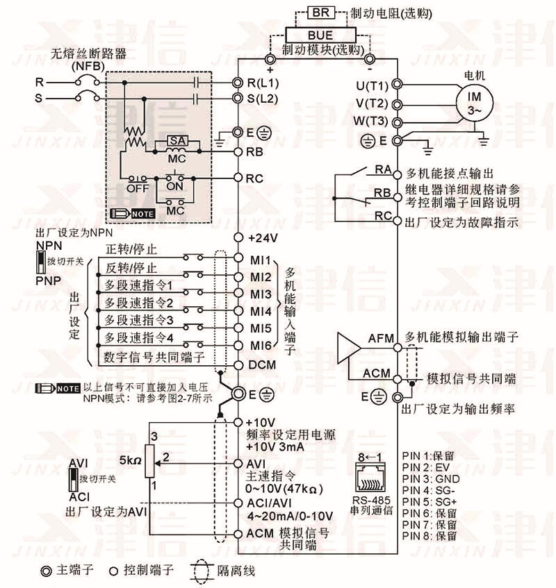 l 控制配線請盡量使用隔離線,端子前的隔離網剝除段請勿露出。