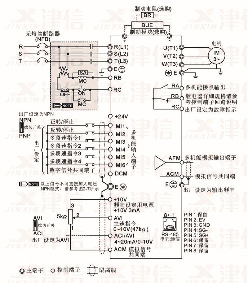 l 主回路配線與控制回路的配線必需隔離,以防止發生誤操作。