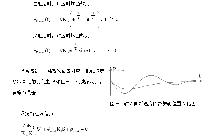 上面的方程表明跳舞輪位置反饋控制等效于以鋼簾線的線速度為輸入變量的二階控制系統。下面就主機工作于勻速和勻加速(減速)兩種不同的工況分別分析跳舞輪位置控制的控制特性。