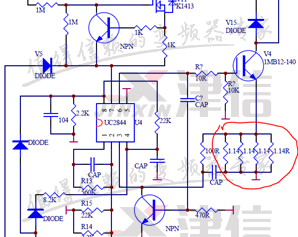 拆下電源卡,查看相關電路圖紙,測量發現開關電源部分的MOS管1MB12-140的E極回路上4個電流采樣電阻阻值不正常(如下圖1所示),4個采樣電阻阻值均為1.14歐姆,采用并聯方式連接,并聯后阻值為0.3歐姆,更換這些采樣電阻,上電顯示正常,故障修復。