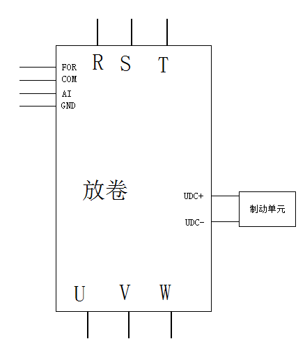 - 放卷變頻器采用開環轉矩控制,電機處于發電狀態,必需接制動單元,并且與收卷變頻器共直流母線;