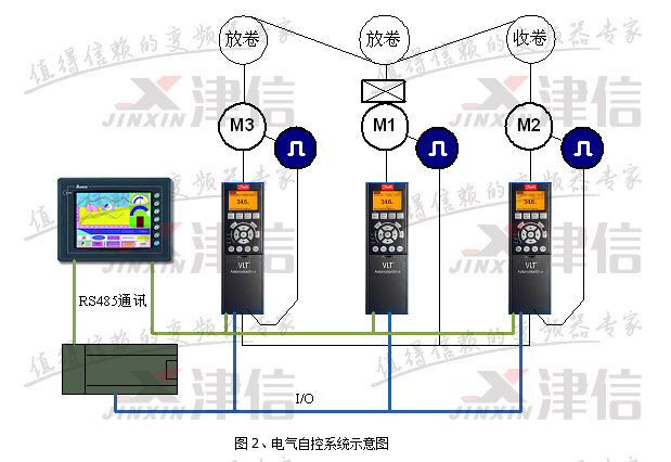 M2為收卷輥,中心卷繞,直徑逐步變大,由一臺FC302驅動,提供收卷張力。